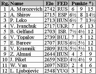 immer, er ging an GM Morozevich, der vor allem im Blind-Spiel beeindruckte. Die