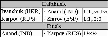 auf. Das Finale auf zwei Partien zwischen Anand und Karpov wurde im klassischen