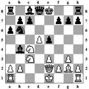 13.Sxc4 Sxc1 14.Txc1 0–0 15.b4 Se8 16.Df3 g6 mit Ausgleich, Ruck-Tukmakov, Cro
