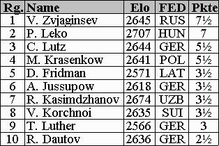 Mit einer ELO-Leistung von 2905! gewann der russische GM Vadim Zvjaginsev das
