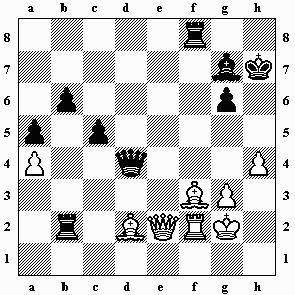 1.Txh7! Kxh7 2.Th1+ Kg8 3.Th8+ Kxh8 4.Lc3+ e5 5.Dxf2 f6 6.g4 g5 7.Df5 1–0