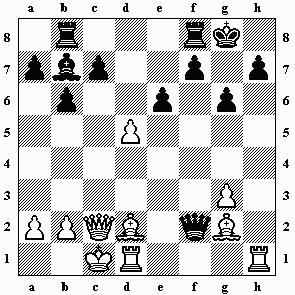 4...Dc2 5.Lf4 Dxd1+ 6.Txd1 Ka8 7.a3 f6 7...Sc2 8.b6 nebst Te5-a5.