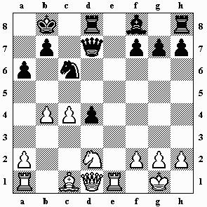 10.Dd2 Ld7 11.Dc3 Tf8 12.d5 f4 13.Txb6 Tf5 14.e6 La4 15.Dc4 Ld1 16.d6 Dd8 17.d7+