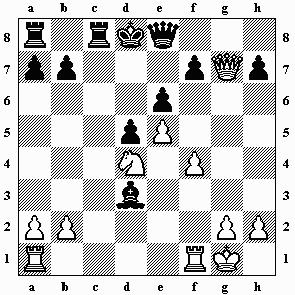 Die Hauptvariante ist: 10.Dxd4 dxe5 11.Dxd8+ Kxd8 12.fxe5 g5 13.0–0–0+
