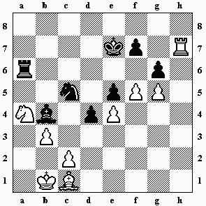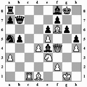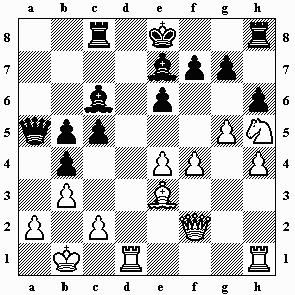 7.Dxh5+ Kg8 8.Lxg6 fxg6 9.Dxg6 Te7 10.h5 Kf8 11.Lxe7+ Dxe7 12.h6 Lf6 13.Kh1 Se5