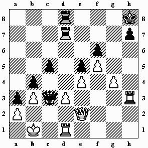 11.Td8+ Tg8 12.Txg8+ Kxg8 13.a4 h5 14.a5 Tb4 15.a6 h4 16.Tb7 Ta4 17.Txb2 Txa6 ½–½