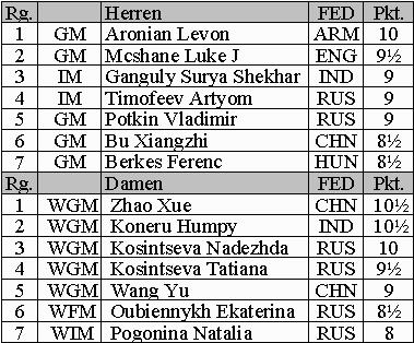 Spielerinnen Zhao Xue und Koneru Paroli bieten konnte.