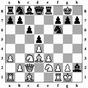 unentschieden. 9.h3 Sbd7 10.Dc2 a6 11.Td1 c5 12.b3 b5 13.dxc5 Sxc5 14.Sxd5 Sxd3