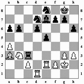 11.Te1 Sf3+ 12.gxf3 Dg5+ 13.Kh1 Dh4 14.Sf4? (Richtig ist 14.Kg1! und Schwarz