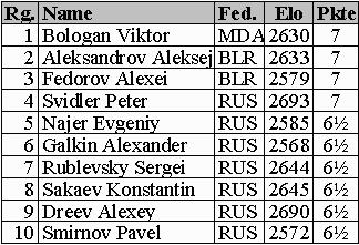 Spieler unter 2400. Nach 8 Runden führten noch die beiden Weißrussen Fedorov