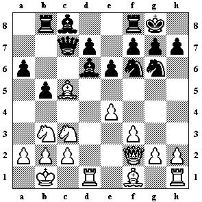 20.S1e2 Lc6 21.Ka1 Da5 22.Sa2 e5 23.Lc3 Dc7 24.Sg3 g6 25.Sf1 Sc5 26.Se3 und