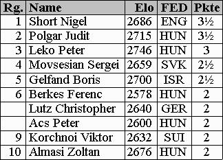 2663) in Budapest. Die einheimische Elite mit Leko, Polgar, Almasi, Acs und