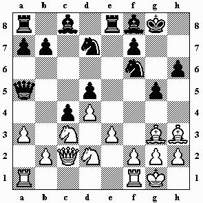 Dxc3 12.Tc1 Da3 13.Se5 b5 14.Sxd7 Lxd7 15.Df3 Dd6 ohne ausreichende
