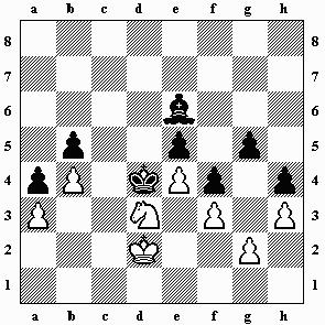 verlieren: 5.Td5 Db3+ 6.Ke4 Dc4+; oder 5.f5 Dc3+ 6.Kg4 Dxg3+ 7.Kxg3 Kxd6; oder