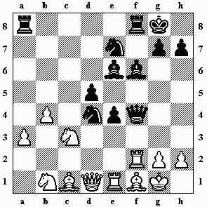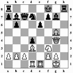 12.0-0 Sge7 13.a3 0-0 14.Ta2 Da5 Mit wenig Erfolg agierte