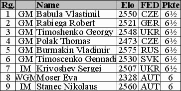 Spieler teilten sich den zweiten Platz. Bester Österreicher wurde FM Heinrich