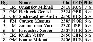 russische IM Mikhail Umansky recht deutlich mit einem Punkt Vorsprung. Gleich 7