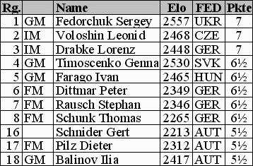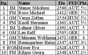 Vier Spieler erreichten 5½ Punkten und teilten sich den ersten Platz. Nach