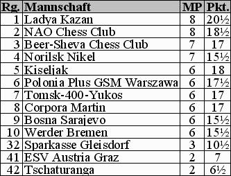 Adams, Vallejo Pons, Lautier) und Bosna Sarajevo (mit Shirov, Bareev, Ivan