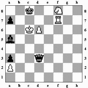 7.Td6+ Kh7 8.Td5 Sa4 9.Ld4 Kg6 10.Td6+ Kh7 11.Lb3 Sb2 12.Tf6 Tb8 13.Lf7 ähnlich