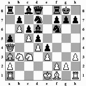 11.0–0–0 Df6 12.Le2 Sxf2 13.Tdf1 Se4 14.Lb4 c5 15.cxd5 exd5 16.dxc5 De7