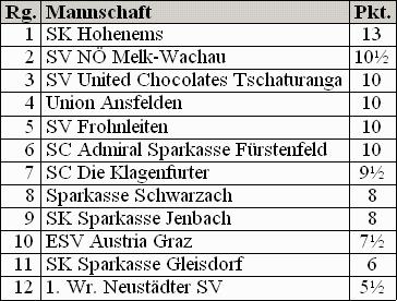 hohen Sieg gegen Wiener Neustadt übernahmen die Vorarlberger mit 2½ Punkten