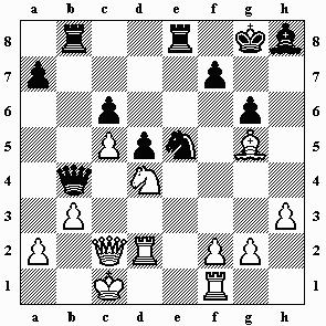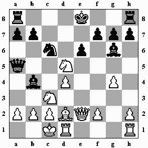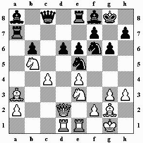 Richtig war 8...Sb4+ 9.Kc1 Tac8 10.De4 Da1+ 11.Db1 Sd3+ 12.Kc2 Sxe1+ 13.Txe1