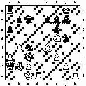 De7 17.0–0 Tad8 18.c4 Sg6 19.Dd2 Sf4 20.Tab1 Df7 Remis, Dolmatov-Sakaev,