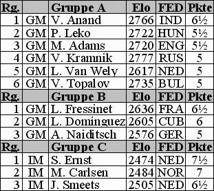 Von allen 21 in den drei GM-Turnieren gespielten Partien endeten nur vier