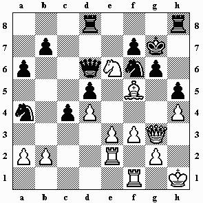 wäre: (13.h3 Sxe3) 13...Dh3 14.0–0–0 Sb6 mit beidseitigen Chancen.