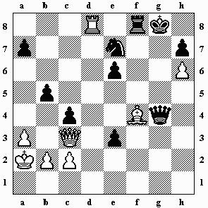 5.Dxg8+ Sxg8 6.Sf7#) 5.hxg4 und Schwarz ist gegen den Angriff wehrlos 1–0
