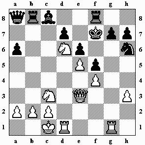15.h6 g6 16.g4 Sc8 17.De3 Sb6 18.Lg5 f6 19.Lh4 Dd7 und Weiß steht ein bisschen