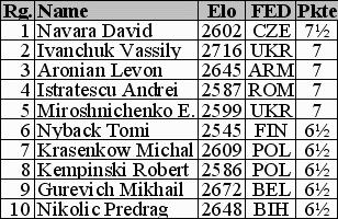 David Navara mit 7½ Punkten, die Nummer 1, Vassili Ivanchuk, der einzige über