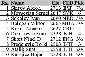 Sarajevo statt. 10 Spitzen-Spieler (Eloschnitt 2617) nahmen an diesem