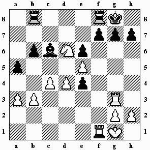 1.Tf4 b5 Adams versucht vergeblich, die Stellung zu öffnen.