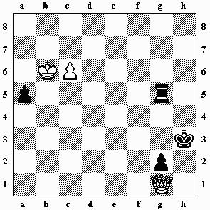 6.Kc6 Tc4+ 7.Kd7 wie bei der anderen Variante.] 6.c8D Txc8 7.Kxc8 a3