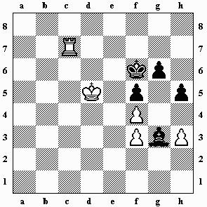 63.f3 h4! mit beidseitigem Zugzwang: Weiß am Zug remis, bei Schwarz am Zug