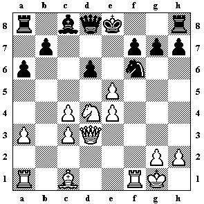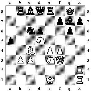 eine Hausvariante hinweist. Die Stellung nach 14...exd4 15.e5 Da5 16.cxd4 wäre sehr gefährlich für Schwarz.