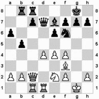 Db4 17. 000 Lxc3 18. bxc3 Dxe4 19. Lxd6 Df5 20. Lxe7 den Anziehenden