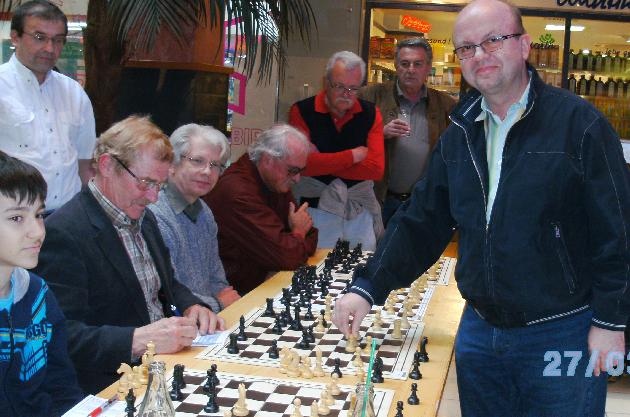 Nationaler Meister Wolfgang Wadsack aus Amstetten trat gleichzeitig gegen Spieler aus Nah und Fern an. Insgesamt traten 38 Schachbegeisterte an, um sich mit dem Meister zu messen. Alle Altersstufen, von 9 bis 73, waren vereint. Damit wurde die Teilnehmerzahl des Vorjahres um 6 Denksportler übertroffen.