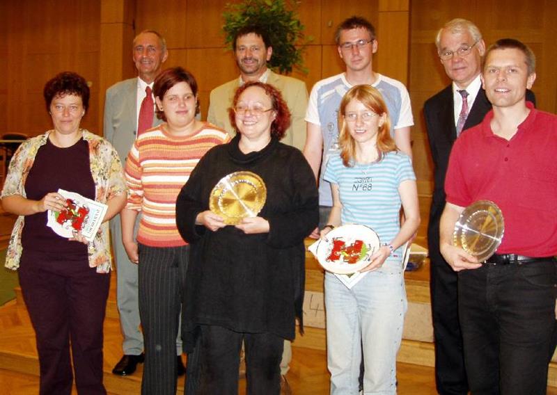 2. Reihe v.l.n.r.: Bürgermeister von Hartberg Karl Pack, Ing. Erich Prem, 3. Platz Herwig Pilaj, ÖSB-Bundesspielleiter IS Werner Stubenvoll